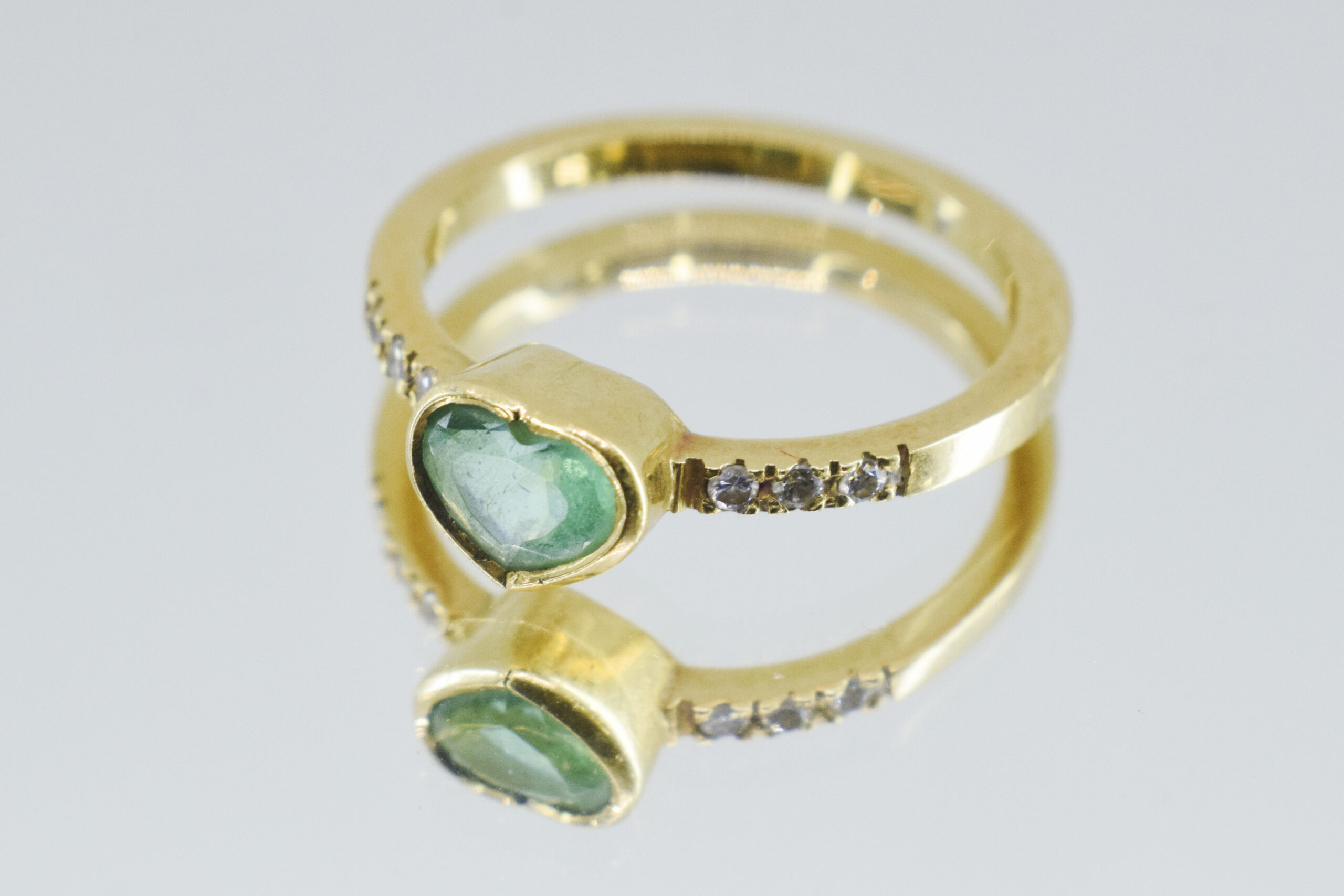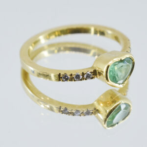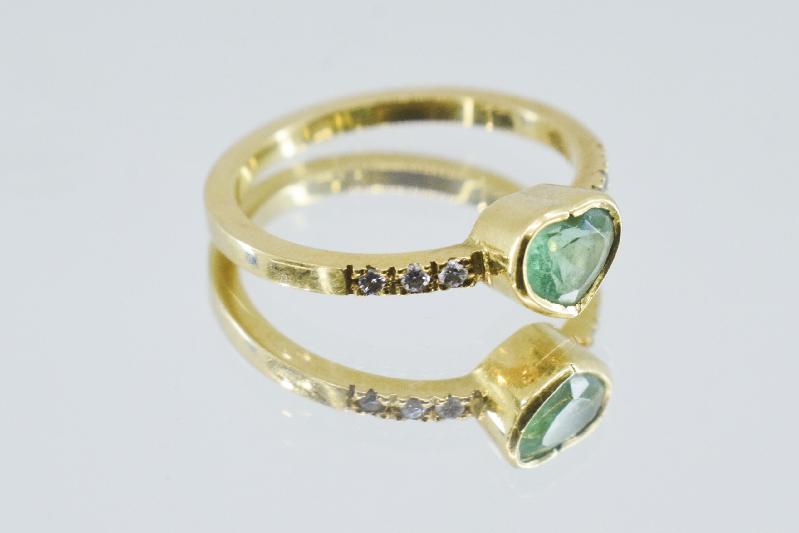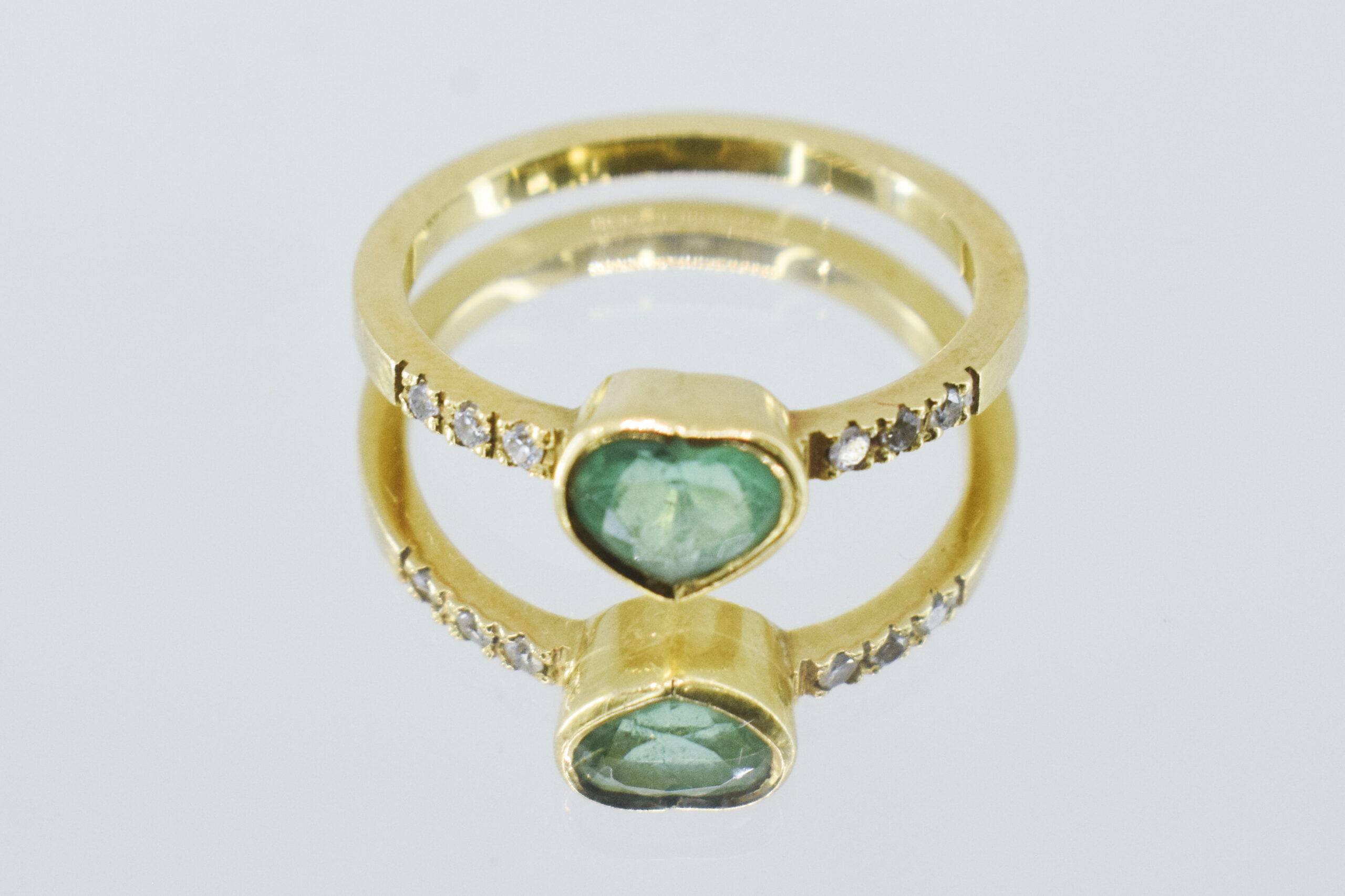 Anillo de oro con un corazón de esmeralda y diamantes (21A)