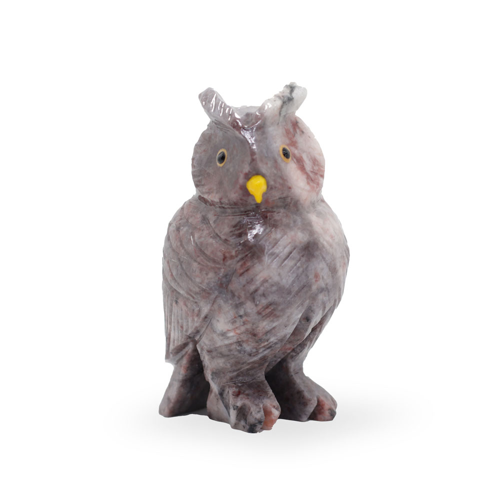 Búho de cuarzo dolomita rosa y gris (107Le)