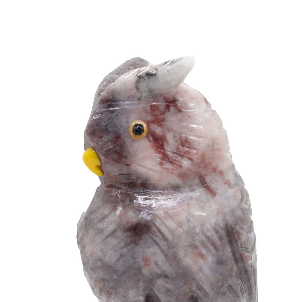 Búho de cuarzo dolomita gris con detalles rosas y guindos (97Le)