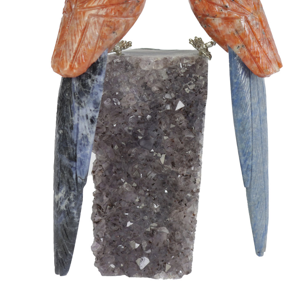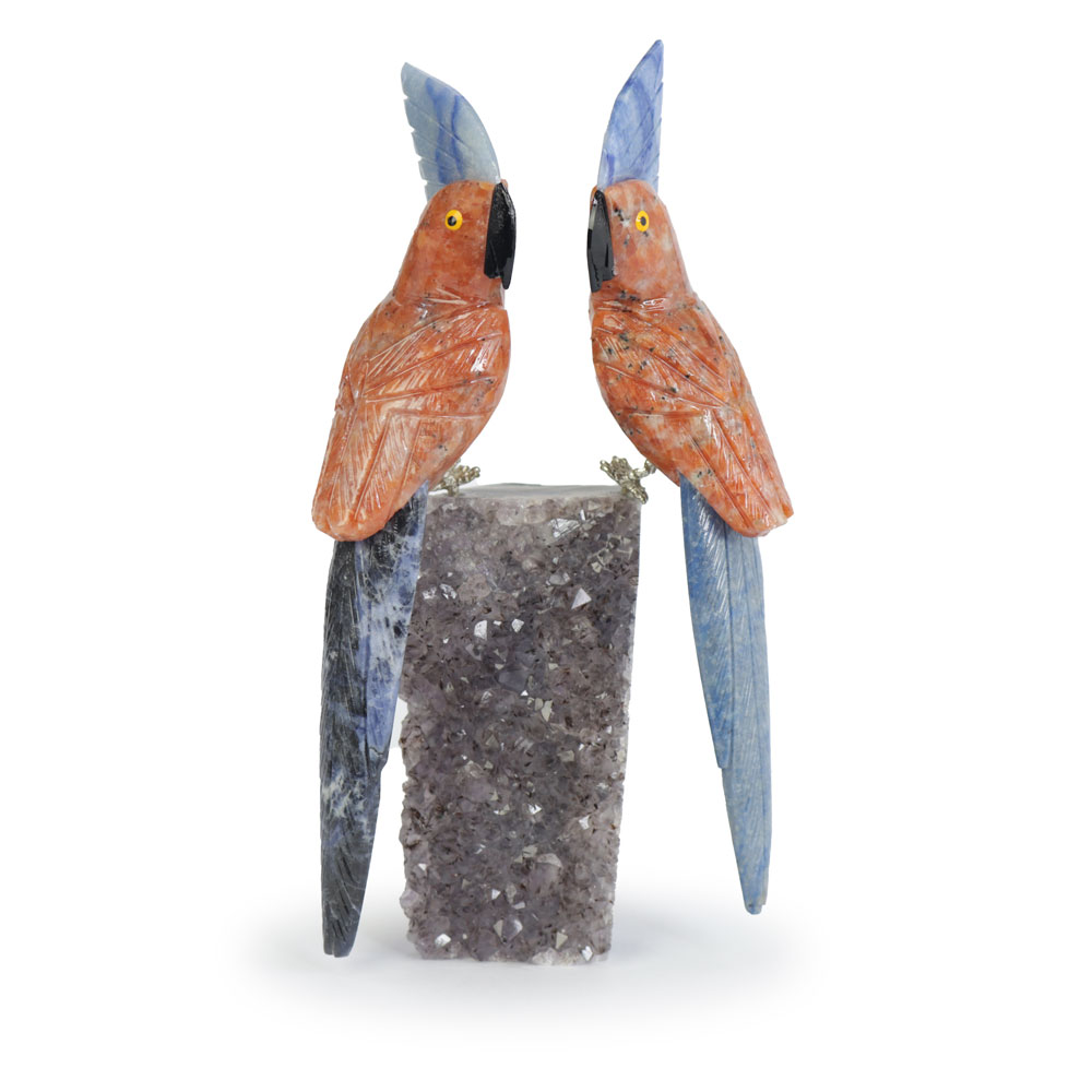 Dos pájaros con calcita naranja y lapislázuli (33P)