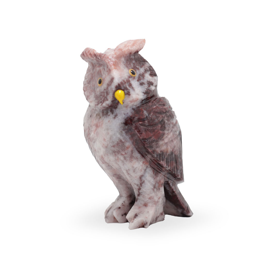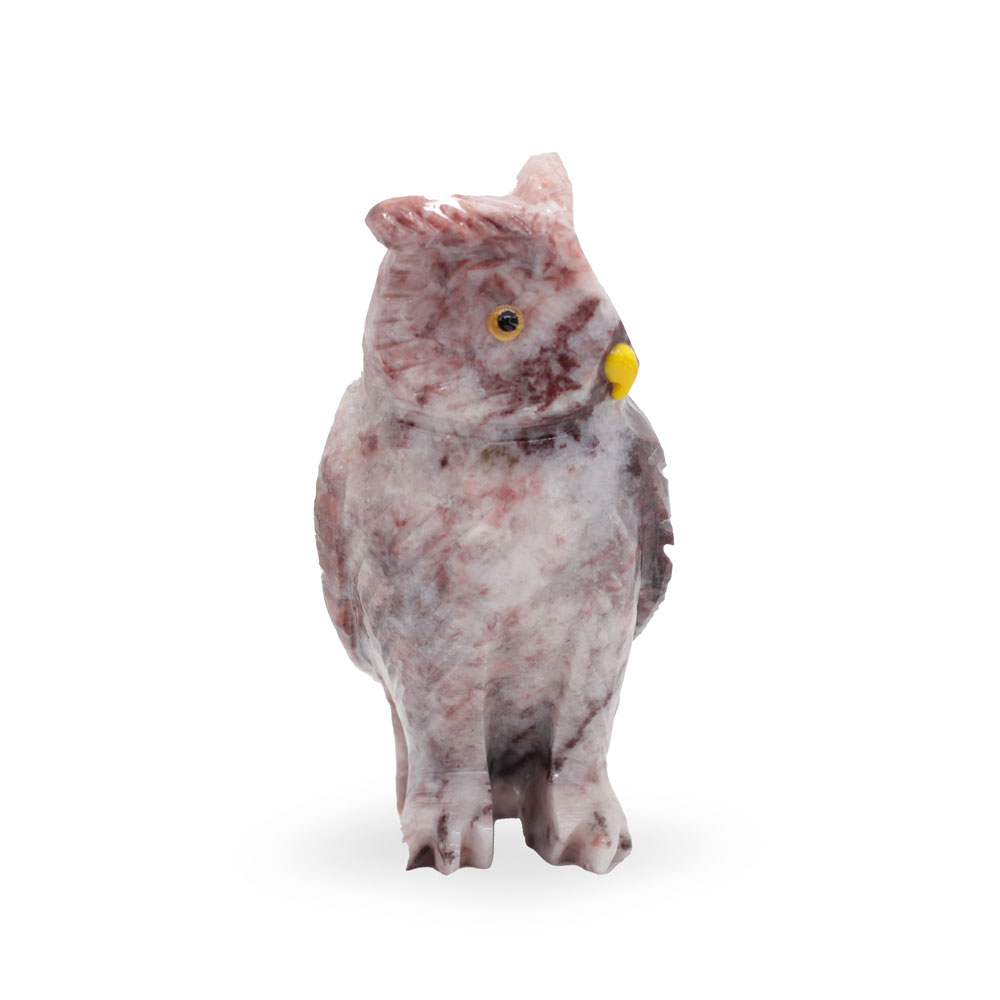 Búho de cuarzo dolomita rosa con detalles guindos (98Le)